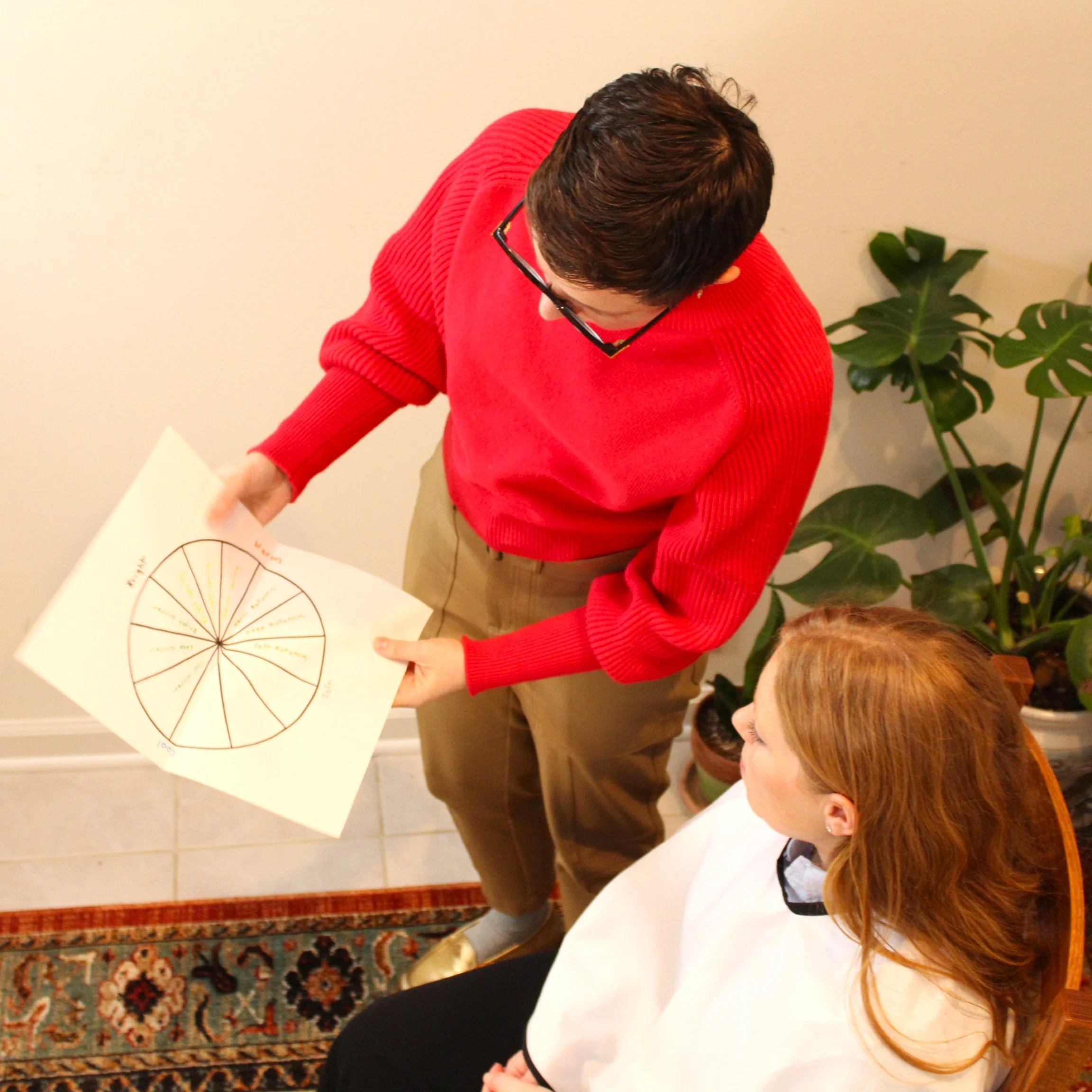 Using the 12-season system, we will identify your ideal color palette by observing the interaction between your features and colored drapes selected to test specific chromatic characteristics.